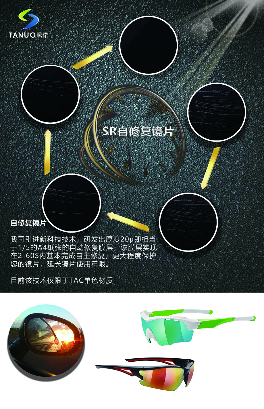 廈門騰諾光學科技有限公司是一家專業從事研發、生產及銷售各類高檔偏光眼鏡鏡片的科技公司,2009年3月成立于環境優美的國家專利產業化(廈門)試點基地——廈門知識產權產業化基地(暨海滄科技創業中心)。主要產品涉及PC、尼龍、PC偏光、尼龍偏光、TAC偏光等系列太陽眼鏡鏡片、近視毛胚鏡片、漸進多焦點鏡片、定制車房太陽近視鏡片、多點離焦鏡片、各類功能性鏡片以及醫用護目鏡等。